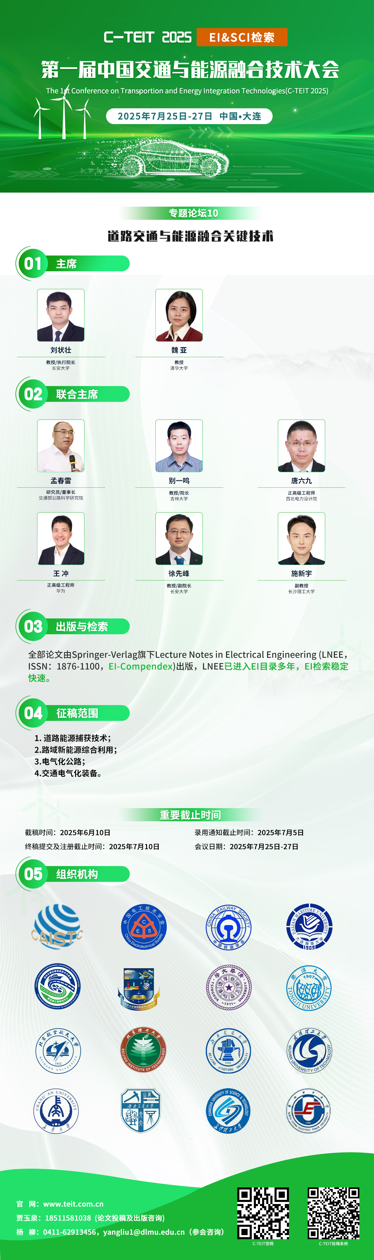 由全国能源与交通融合创新发展联合体成员单位、中国国际科学技术合作协会、中国中车集团有限公司等单位共同主办的第一届中国交通与能源融合技术大会(C-TEIT2025)将于7月25日至27日在美丽的滨海城市大连盛大召开。本次盛会由中国电工技术学会、中国造船工程学会、中国铁道学会联合主办。大连海事大学、综合交通运输智能技术与装备教育部工程研究中心、中国国际科学技术合作协会能源与交通融合专业委员会、国家能源交通融合发展研究院、大连东北亚国际航运中心研究院联合承办。