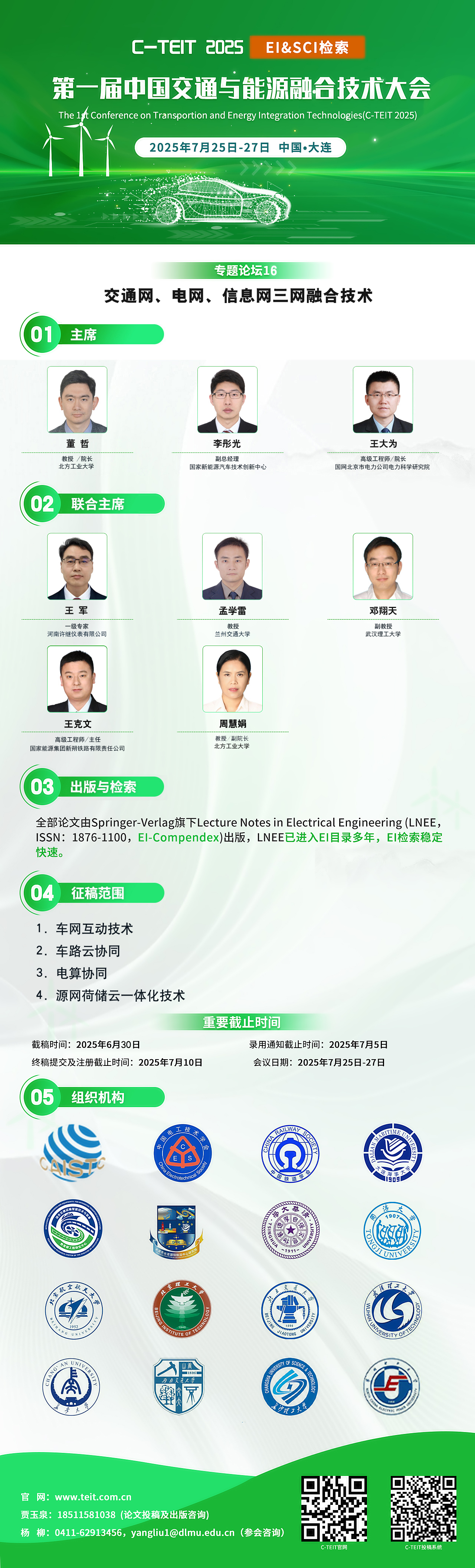 由全国能源与交通融合创新发展联合体成员单位、中国国际科学技术合作协会、中国中车集团有限公司等单位共同主办的第一届中国交通与能源融合技术大会(C-TEIT2025)将于7月25日至27日在美丽的滨海城市大连盛大召开。本次盛会由中国电工技术学会、中国造船工程学会、中国铁道学会联合主办。大连海事大学、综合交通运输智能技术与装备教育部工程研究中心、中国国际科学技术合作协会能源与交通融合专业委员会、国家能源交通融合发展研究院、大连东北亚国际航运中心研究院联合承办。