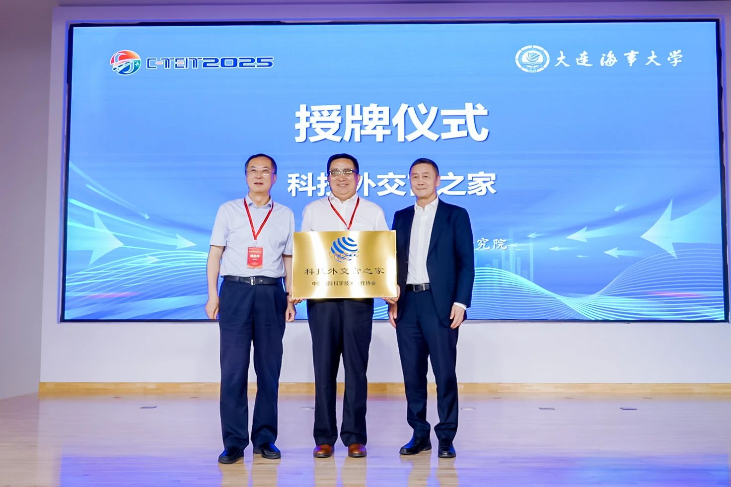 开幕式后,中国国际科学技术合作协会授予大连东北亚国际航运中心研究院“科技外交官之家”称号,并由协会会长靳晓明与兰州大学校长杨勇平共同授牌。研究院依托大连海事大学学科优势,聚焦绿色港航、氢能交通,打造集研究、攻关、交流于一体的创新平台,未来将深化交通与能源领域国际合作,服务国家交通强国、海洋强国战略,贡献“海大智慧”。