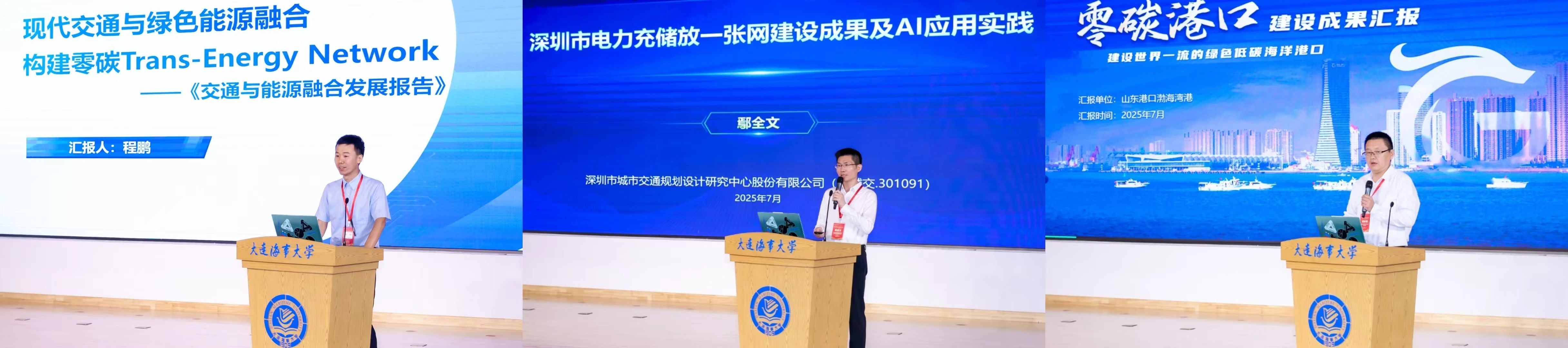 创新成果发布环节,华北电力大学国家能源交通融合发展研究院副教授程鹏代表能源与交通融合创新发展联合体发布了《交通与能源融合发展报告(2025)》,提出交通与能源融合网的核心理念,即通过交通数据的可再生资源指数,为交通供给提供绿色便利。深圳市城市交通规划设计研究中心股份有限公司首席数据官鄢全文分享了深圳市电力充储放一张网建设成果及AI应用实践,展现了在交通与能源网络协同运行中,人工智能技术的创新应用与实际成效。山东港口渤海湾港集团有限公司科技信息部副部长姬长锐就零碳港口交能融合建设成果进行汇报,介绍了零碳港口在能源利用、技术集成等方面的实践经验,为港口领域的能交融合转型提供借鉴范例。